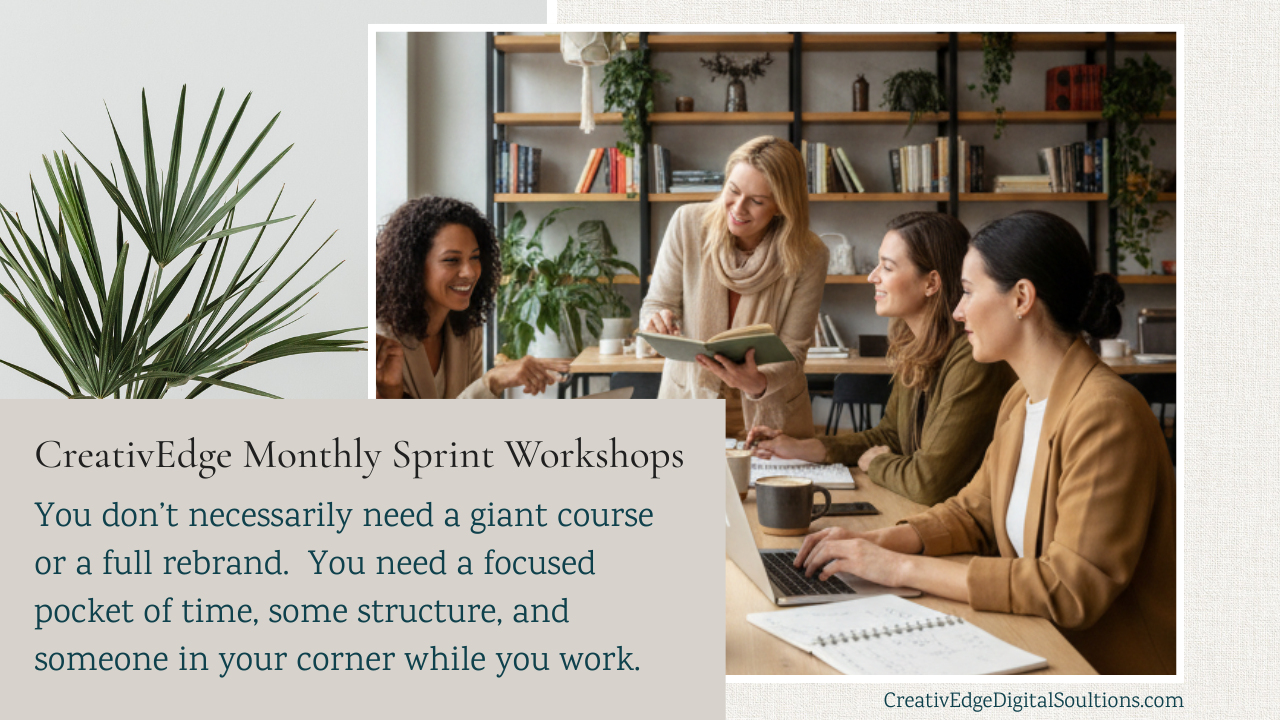 CreativEdge Sprint Workshops are live, small‑group sessions where we work on your website and marketing together in short, focused sprints.